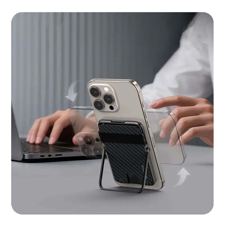 Многофункциональная магнитная системаMagLock - это магнитное кольцо MagSafe совмещенное с карабином, а значит его легко можно повесить на ремень или карман. С лицевой стороны сила сцепления 14 Н для фиксации телефона и 10 Н на тыльной для крепления аксессуаров. Подвижная констуркция даёт возможность использовать кардхолдер в качестве подставки, с комфортом используя смартфон |