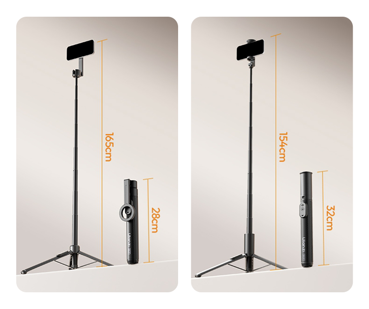 Сильный и стойкий штатив SK27 создан специально для любителей и профи мобильного контента. Он может быть как напольной треногой высотой до 1.5 метра, так и усиленной селфи-палкой. В сложенном положении длина составляет примерно 30см, а значит его можно взять с собой на прогулку или в путешествие. Модель выпущена в двух вариантах: