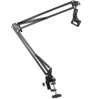 Пантограф с креплением на стол, способный выдерживать нагрузку до 1.5 кг. Модель изготовлена из прочного алюминиевого сплава, что делает её идеальным выбором для профессиональных записей. Компактная складная конструкция упрощает хранение и транспортировку, сохраняя порядок и свободное пространство на рабочем месте
