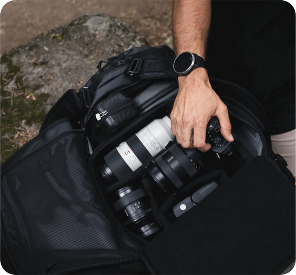 Верхний карман с сетчатым отделением для мелочей, полноразмерный органайзер и расширяемый нижний отсек — каждый элемент подчинен логике путешественника. Съемные лямки рюкзака с регулируемым стернальным ремнем распределяют вес по спине, а четыре точки крепления позволяют добавить ремень для плеча. Бегунки молний оснащены петлями WORRYLESS, что способны сцепляться предотвращая нежелательное открытие. Это не сумка, а персональный логистический центр, где у каждой вещи есть свое место — от ноутбука до запаса носков