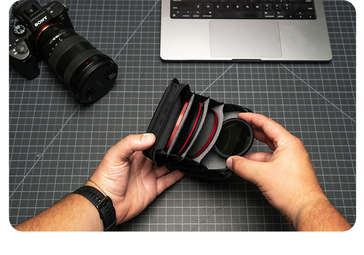 Умная организация и быстрый доступКейс для светофильтров Lens Filter Case от мастеров из WANDRD предлагает продуманную систему хранения до четырех линз диаметром до 82 миллиметров. Четыре мягких разделительных слота из нейлона Nylex обеспечивают надежную защиту от царапин и повреждений при транспортировке. Система быстрого доступа одной рукой позволяет моментально менять фильтры прямо во время съемочного процесса. Наружная петля позволяет легко закрепить кейс на ремне, рюкзаке или другом снаряжении для постоянного доступа к необходимым фильтрам |