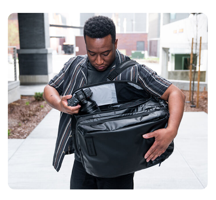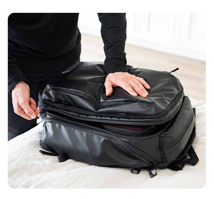 Рюкзак изготовлен из водонепроницаемого материала на основе прочного брезента и баллистического нейлона, обеспечивающего защиту от непогоды. Молнии с влагозащищенной конструкцией предотвращают проникновение влаги внутрь отделений. Габариты оптимальны для использования в качестве ручной клади. Система быстрого бокового доступа Dual Quick Draw обеспечивает моментальное извлечение оборудования без необходимости полной распаковки. Совместимость с аксессуарами WANDRD позволяет настраивать систему под индивидуальные потребности
