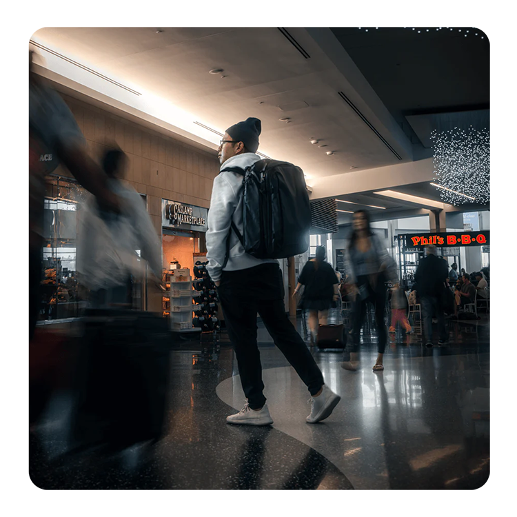 Эргономичная конструкция рюкзака включает анатомические лямки с возможностью скрытого хранения, что предотвращает их повреждение при транспортировке в багажных отделениях. Специальный проход за спинкой для крепления на ручку чемодана обеспечивает удобство перемещения в аэропорту. Скрытые отделения для документов и карман для AirTag предоставляют дополнительную защиту важных вещей и возможность отслеживания TRANSIT. Уникальная система блокировки молний Worryless обеспечивает защиту от кражи с помощью четвертьоборотного механизма фиксации