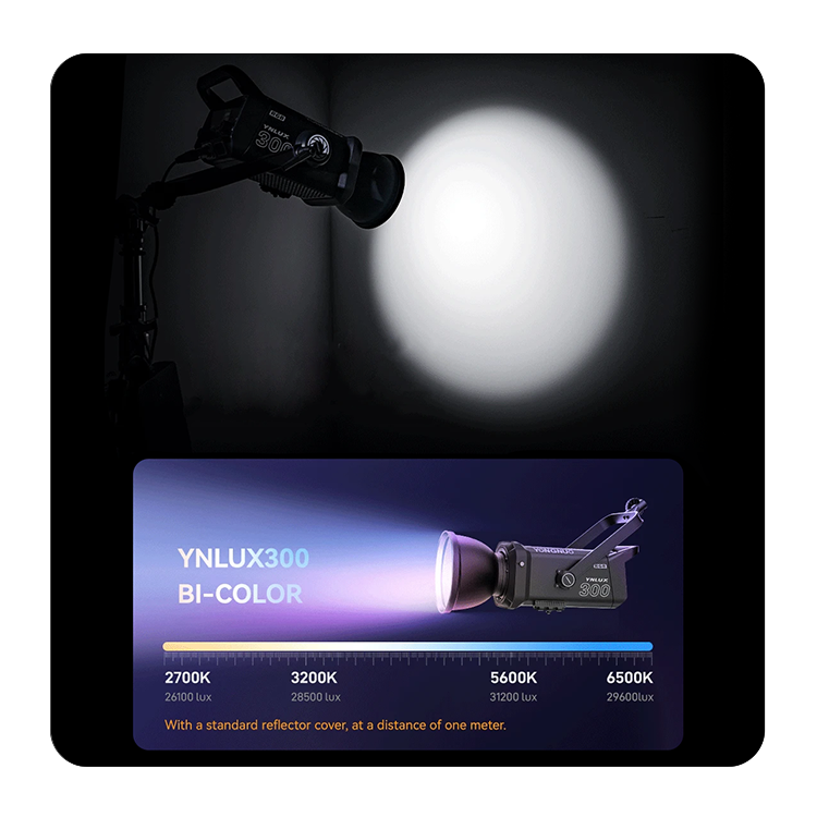 Мощный студийникМодели серии YNLUX300 были созданы специально для фотостудий, гарантируя отличный результат, благодаря впечатляющей точностью цветопередачи. Вес системы оптимизирован для мобильности, сохраняя баланс между надежностью и удобством эксплуатации в полевых условиях. Модель выпущена в двух вариантах: