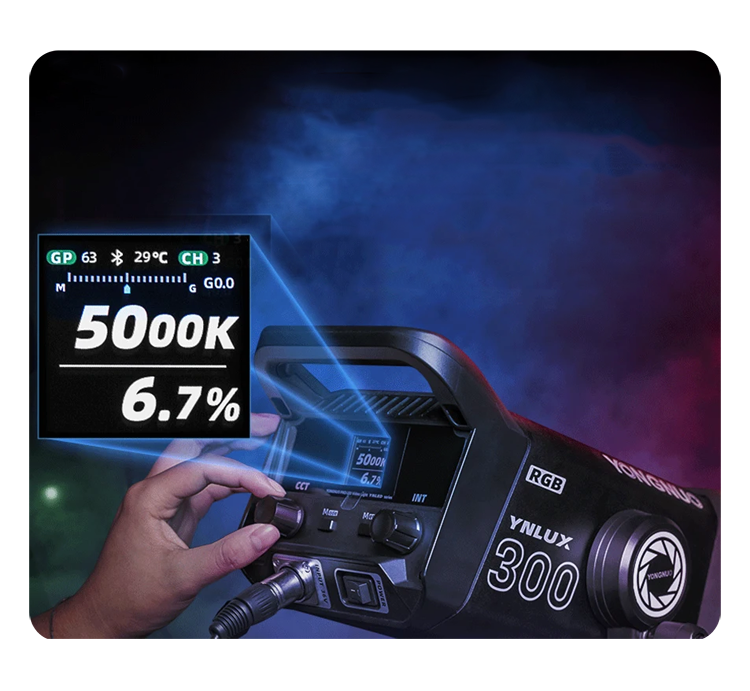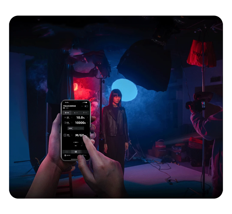 Творчество без границБлагодаря байонету Bowens осветитель способен работать со всевозможными насадками, настраивая световой поток как нужно. Управлять YNLUX300 можно при помощи меню на задней панели, либо на расстоянии, подключив его к приложению на вашем смартфоне |